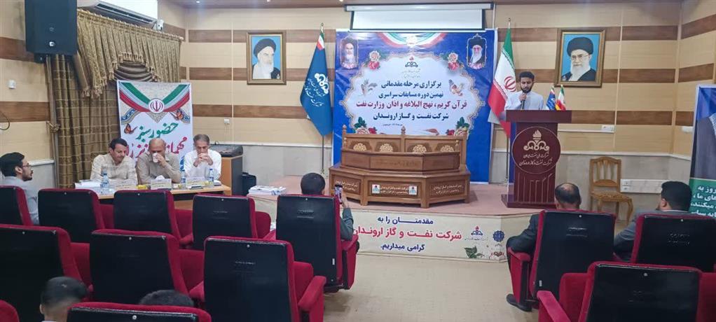 به گزارش روابطعمومی شرکت نفت و گاز اروندان، (چهارشنبه ۱۶مهر ۱۴۰۴) مرحله مقدماتی نهمین دوره مسابقات سراسری قرآن کریم، نهجالبلاغه و اذان وزارت نفت ویژه کارکنان این شرکت، با حضور مهندس حمید دریس مدیرعامل، جمعی از مدیران، روئسا و کارکنان در خرمشهر برگزار شد.
