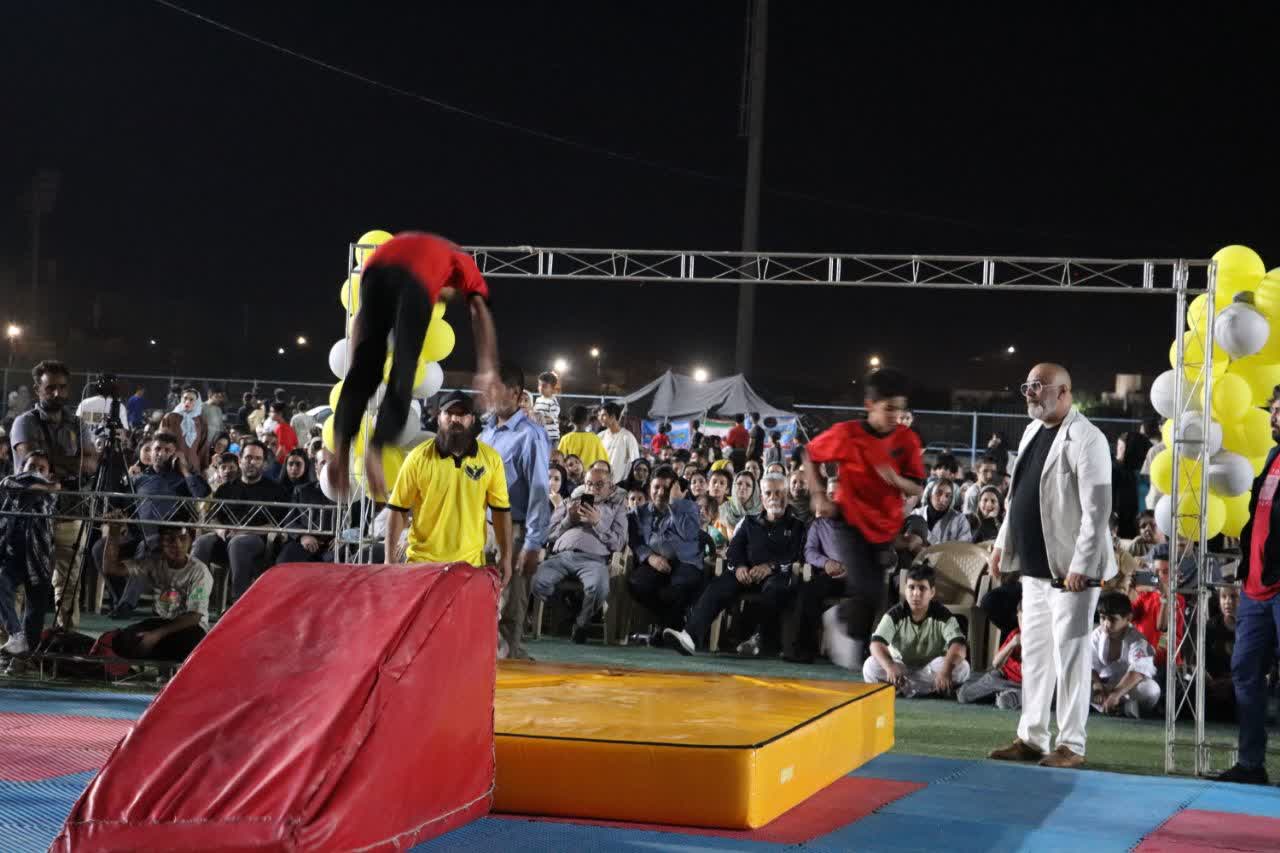 این برنامه شاد و خانوادگی که به مناسبت هفته تربیت بدنی و ورزش اجرا گردید با اجرای برنامه های متنوع ورزشی، حرکات ورزشی و هنرهای رزمی، جنگ شادی، نور افشانی و برگزاری مسابقات همراه بود.